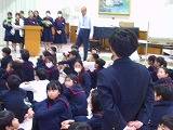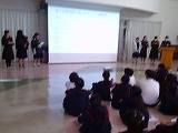 附属中学校の2年生が創造デザイン科の授業で、5年生に中学校生活や部活動について話をしに来てくれました。今やっている部活動が一部地域移行をして2年後にはすべてなくなるという説明に5年生も不安そうでした。でも運動や文化の機会をなくさないために中学生が頑張っていることも話してくれました。5年生は「部活動のことは少し聞いていたけどよくわかりました」「部活動がなくなるのは残念」「プレゼンの仕方がわかりやすく参考になりました」「中学生がわたしたちのために頑張っているのを知ってうれしかった」など感想を伝えていました。そのあと部活動についてのアンケートに答えていました。中学生はアンケートの結果をこれからの活動に生かしていくそうです。