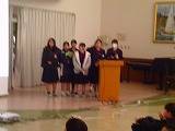 お昼の放送で1年生の「あのね発表」がありました。少し緊張しながらも「発表会での図工が楽しかった」「あさがおの色水が楽しかった」「造形あそびが楽しかった」などいろいろな体験をして楽しかったこと うれしかったことをしっかりと話すことができました。まぶしいスポットライトをあびて言い終わった後はほっとしてにっこりしていました。