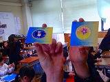 附属中生徒のグループが創造デザイン科の探求学習の一環で小学校へきました。3年生には安全な生活ができるようにオリジナルステッカーを配布、6年生には中学校のことを知ってもらおうと中学校クイズを、図書館ではでは本に親しむために本の紹介本立てを設置してくれたりしました。また図書プロジェクトに感想を聞いて改善箇所を相談していました。よりよい小学校生活を送れるようにさまざまなアイディアをだして取り組んでくれました。
