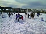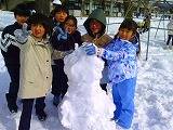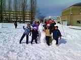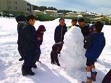 お昼休み「雪だるま大会」がスポーツプロジェクト主催で開かれていました。運動場にたっぷりある雪を転がして、グループで思い思いの雪だるまを作っていました。3段の雪だるまや怪獣だるまなどいろいろでした。出来上がった雪だるまはスポプロがカメラにおさめて審査をするそうです