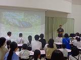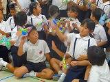 2年3組の親子行事では「アサギマダラ」について石川県立大学から先生を招いて親子で学びました。アサギマダラが海を渡って台湾までとんでいくことに驚いていました。捕獲してきた本物のアサギマダラをみたり、指でさわったり、虫眼鏡でのぞいたりと体験を通してアサギマダラに愛着を感じているようでした。そのあと親子工作、画用紙のアサギマダラにカラフルに色をつけてひらひらと飛ばしていました