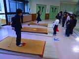 なわとび週間がはじまりました。長休みや昼休みに場所を区切って、廊下やランチルームでとびます。いろいろな技に挑戦してなわとびチャレンジカードに記録していきます。ランチルームに設置してあるジャンピングボードは人気で、長い列ができています。高く飛び上がる感覚を楽しんでいました。はあはあと心地よい汗をながしています
