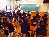 準備を終えた後、校長先生からは「6年生はこれからの1年間、相田みつをさんの詩『根は見えないんだよなあ』のように、学校を支える存在であってほしい」とのお話がありました。