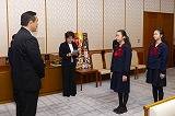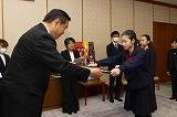 弦楽合奏部に「石川県文化優秀賞」が贈られました。石川県知事から弦楽合奏部の代表に賞状と記念品が手渡されました。そのあと知事との懇談では、受賞した喜びや感謝を話していました。
