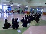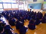 「あけましておめでとうございます」とあいさつを交わして三学期の始業式がはじまりました。校長先生からは新年を迎えうまや北極星のはなしから目標にむかってすすむことの大切さについてのお話がありました。また今月の目標「あいさつを広げよう」の話のあと、今月から赴任した事務の先生の紹介がありました。