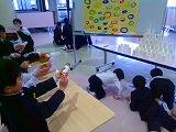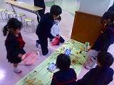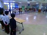 ランチールームからは楽しげな声がしました。2年生が1年生をまねいておもちゃランドをひらいていました。1年生は、2年生に教えてもらいながら、コロコロコロンでころがしたり、ロケットポンでまとあてしたり、魚釣りで大物をつったりと楽しんでいました。