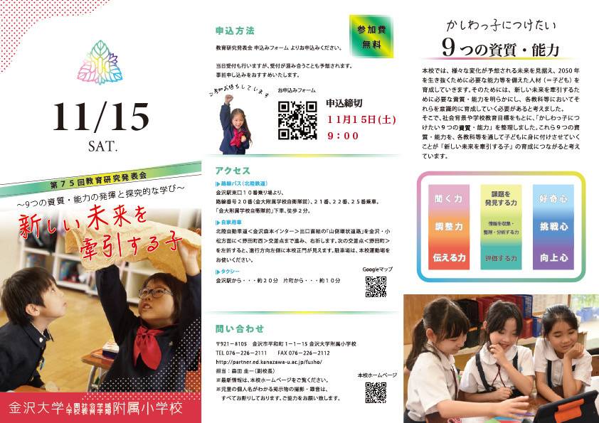 第75回教育研究発表会 11月15日(土) 9:00~12:30