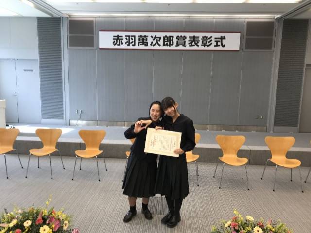 11月15日(土)、北國新聞社主催「赤羽萬次郎賞」贈呈式が行われ、本校中学部が地域活動部門において表彰されました。