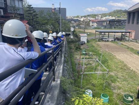 SDGsの目標11「住み続けられるまちづくり」を実現するためには、まず自分たちの身近な地域を知り、災害に強いまちづくりを考えることです。そこで中学部17名は、学校のまわりを実際に歩きながら、災害が起こりそうな場所を調べました。活動の中で、生徒からは「初めて来たけど、ここは危なそうだな」、「この場所は土砂災害が起きそう」といった声が聞かれ、たくさんの気づきが生まれていました。これからも体験を大切にしながら、学びを深めていきます。