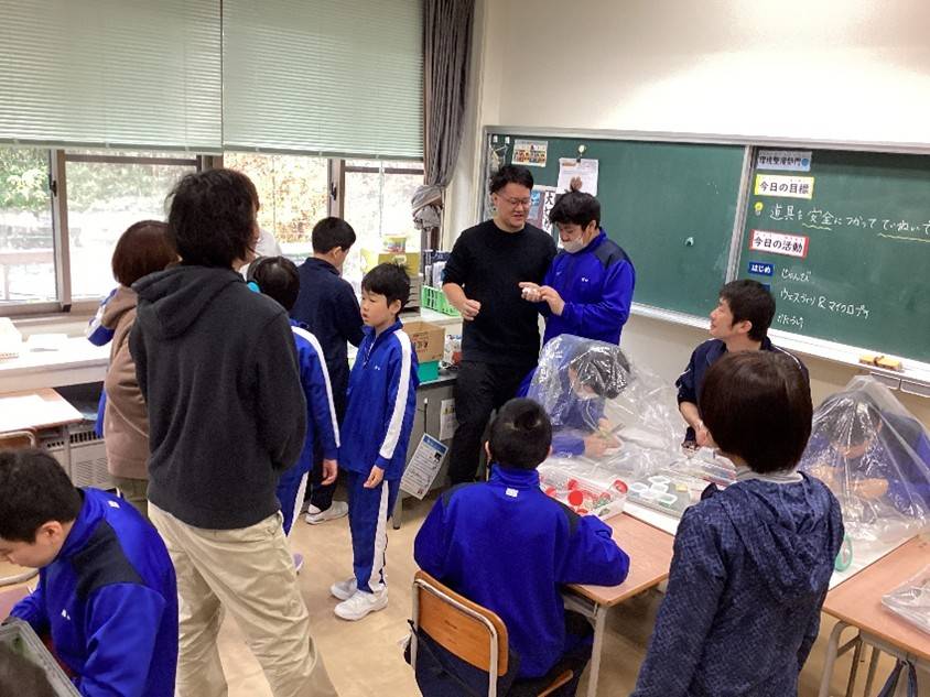 中学部では、探究学習の一環として、海洋プラスチックを材料にしたアクセサリー作りに取り組んでおり、すっかり“得意分野”になっています。今回は、「必要としている小学部の子どもたち」と「得意としている中学部の生徒」が、中学部の教室で出会い、思いのこもった素敵な交流が生まれました。さらに話を聞くと、12月2日に小学部で「アクセサリー作り教室」を実施する予定とのこと。準備を進める生徒たちの表情は、どこか誇らしげで頼もしく感じられました。