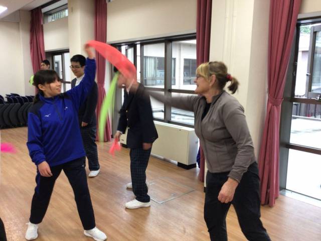 どの生徒も音楽やダンスを通じ、心を通い合わせ、楽しさや喜びなどの感情を表現しあうことができました。また、ジェスチャーや表情、知っている単語を伝えたりしながら、積極的に楽しもうとする姿も見られました。