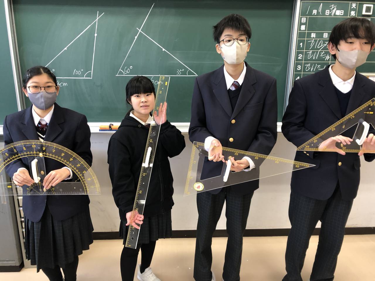 保護者の皆様、地域の皆様のご協力により、今年度はポイントを「大型定規」に交換しました。数学の授業で早速活用しています。