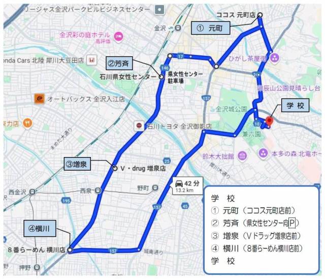 スクールバス運行経路図・発着時刻表