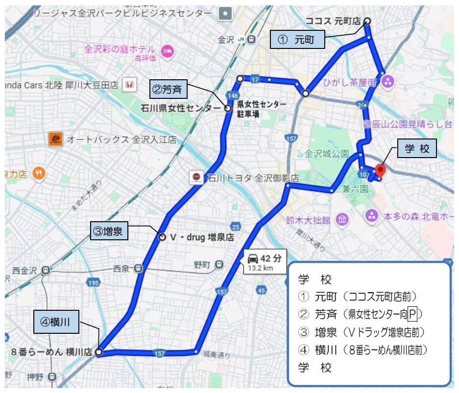 欠席等の事情により利用児童生徒が不在の場合、該当するバス停に寄らずに出発時刻を調整して運行する場合があります。