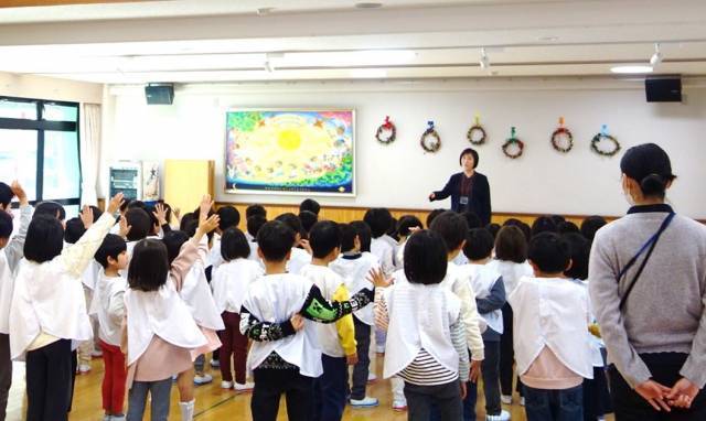 みんなで2学期を振り返ったり、安全についてのお話や冬休み中の生活についてのお話を聞いたりしました。