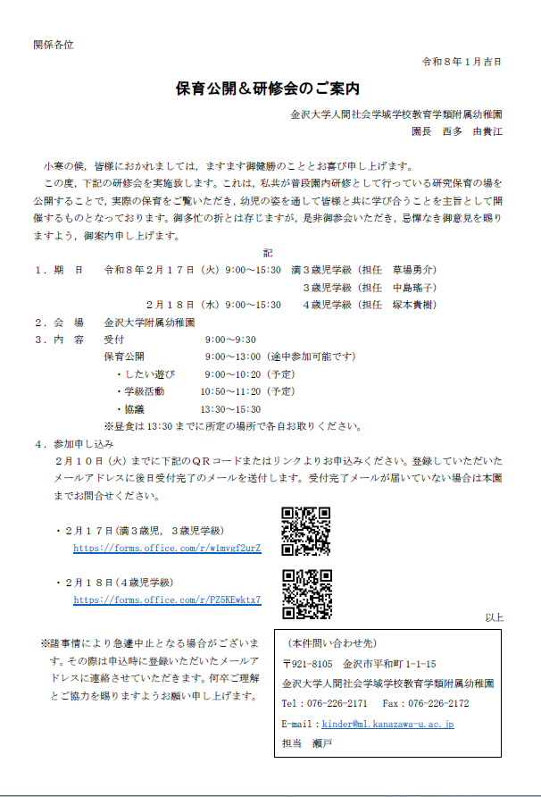 保育公開&研修会のご案内